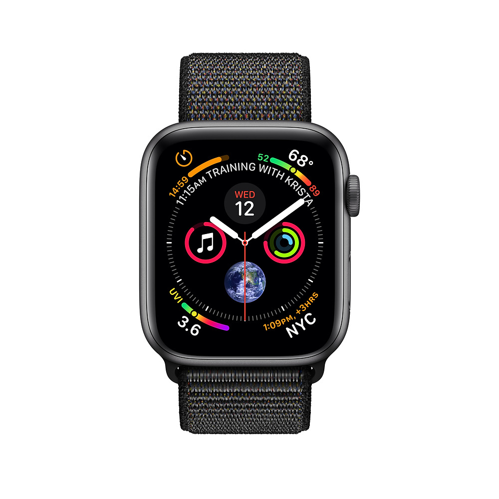 Apple Watch Series 4, 40 мм, корпус из алюминия цвета «серый космос», спортивный браслет чёрного цвета