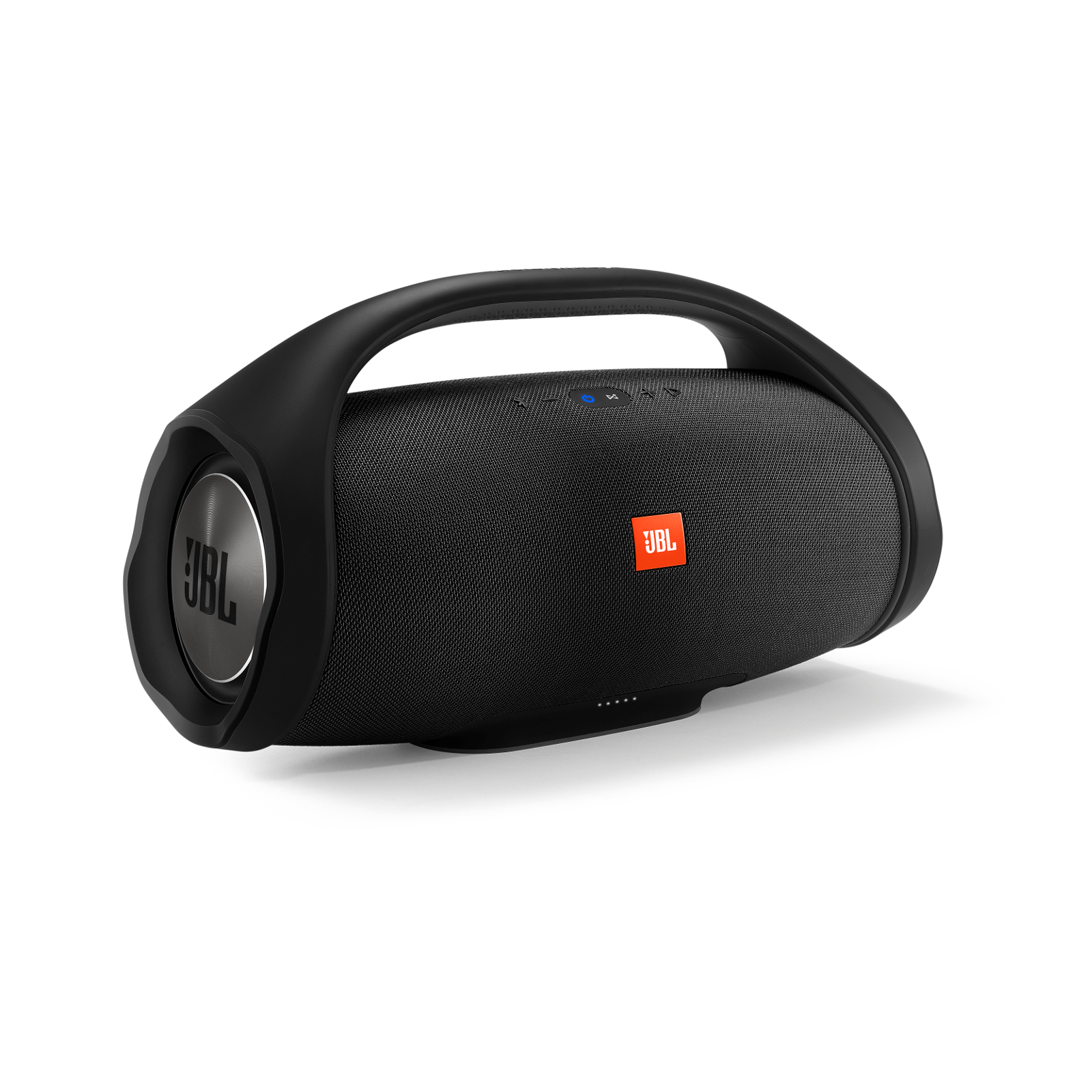 Портативная колонка JBL Boombox сочетает эффектный дизайн с превосходным качеством звука. Она снабжена 60-ваттными динамиками и двумя пассивными излучателями, значительно усиливающими низкие частоты. С ней музыкальные композиции становятся действительно живыми и насыщенными. Устройство предлагает пользователю два режима работы – «домашний» с максимальной чистотой звука и «уличный» с громкими ударными басами.