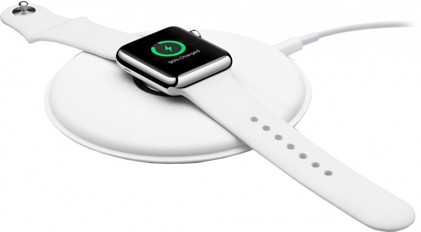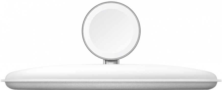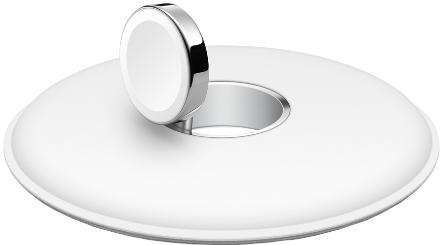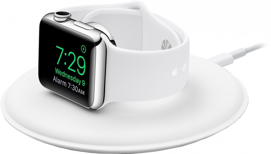 Док-станция для зарядки Apple Watch с магнитным креплением позволяет заряжать часы в горизонтальном положении с расстегнутым ремешком или в положении на боку. При зарядке в положении на боку часы автоматически переходят в ночной режим, и их можно использовать в качестве будильника. На док-станции с магнитным креплением для Apple Watch используется такой же разъем для индуктивной зарядки, какой входит в комплект поставки Apple Watch. Док-станция подходит для обеих моделей — с корпусами 38 мм и 42 мм. Она подключается через кабель Lightning/USB и адаптер питания Apple USB мощностью 5 Вт.