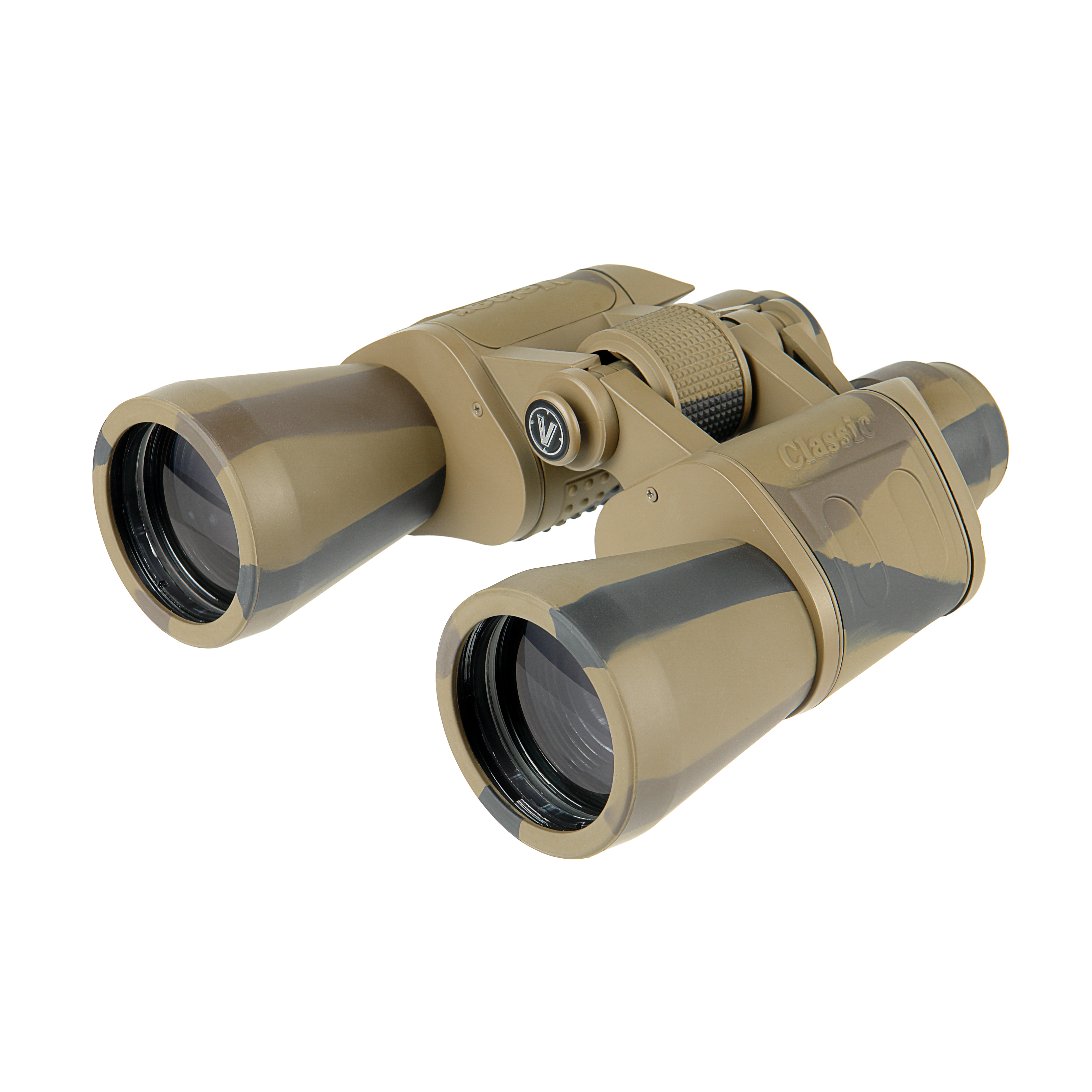 Увеличение 7х, диаметр объектива 50 мм. Классические «морские» оптические характеристики. Широкий угол и большая светосила. Металлический корпус, трудноистираемое просветляющее покрытие оптики и удобные для работы в перчатках колесики настройки фокусировки. Отделка корпуса резиной (VR) камуфляж. Призмы из стекла Bak-4. Полужесткий кейс в комплекте.