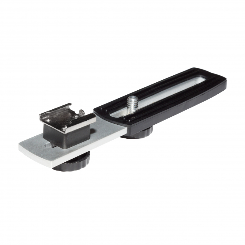 Длина держателя 150 мм, два посадочных винта имеют внутреннюю и внешнюю резьбу 1/4", в комплекте адаптер с разъемом «башмак».