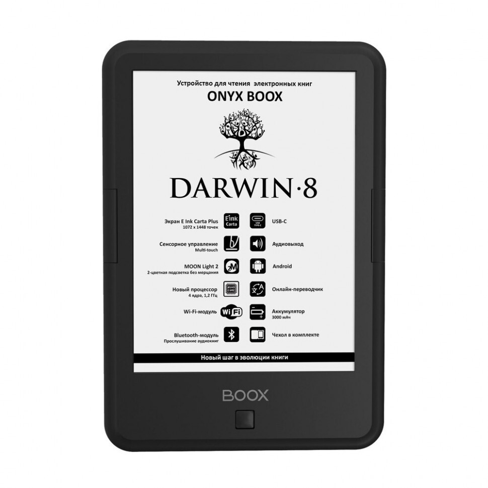 | Комплектация | Электронная книга ONYX BOOX Darwin 8 Руководство пользователя Чехол-обложка USB-кабель Гарантийный талон |