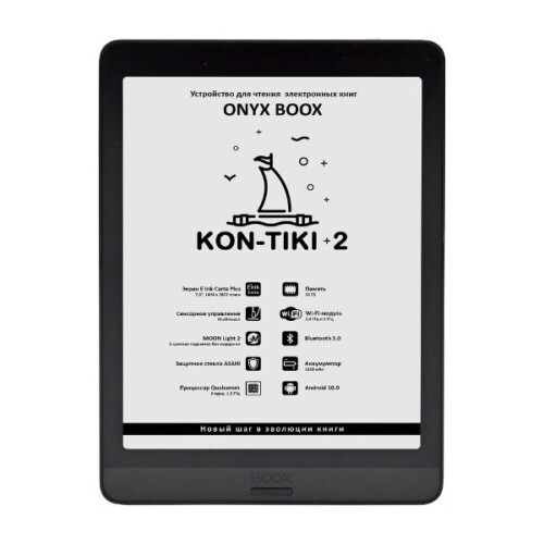 | Комплектация | Электронная книга ONYX BOOX KON-TIKI 2 Защитная обложка Руководство пользователя USB-кабель Гарантийный талон |