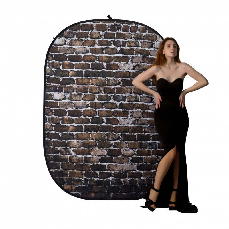 Быстроскладывающийся двухсторонний тканевый фон на гибком каркасе, цвет: терракотовая кирпичная кладка/черный. Ширина 1.52 м, длина 2.13 м.