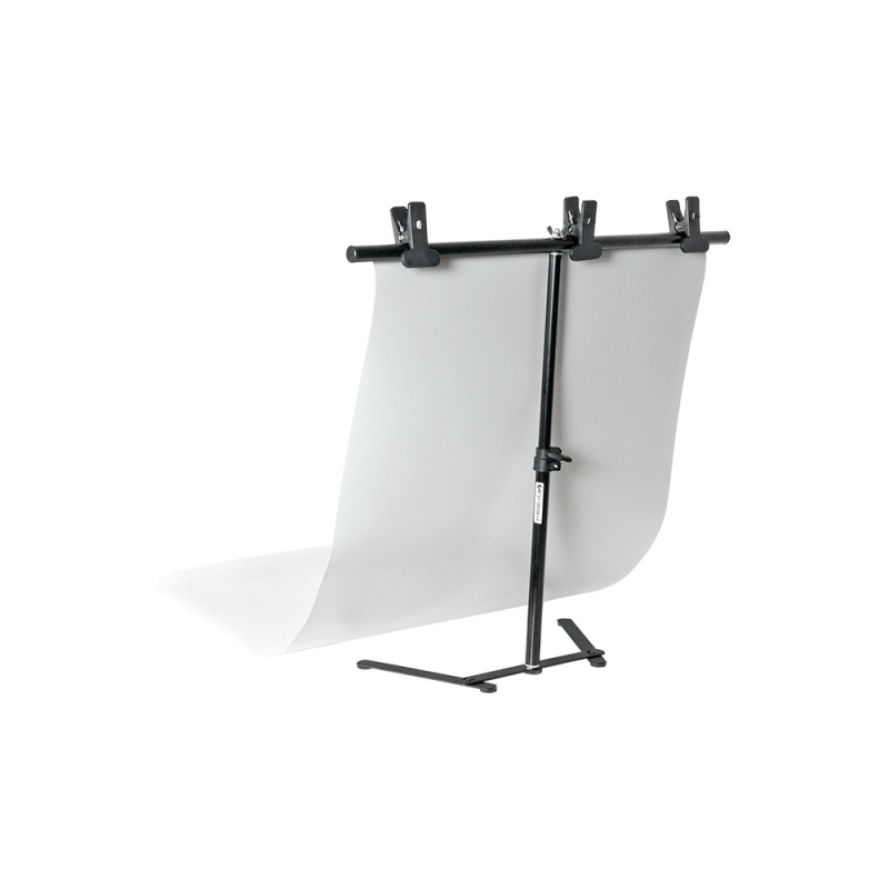 Набор из трёх (черного, серого и белого) фонов и стойки с перекладиной. Размер фонов 132 х 63 см. Высота стойки регулируется от 35 до 63 см.