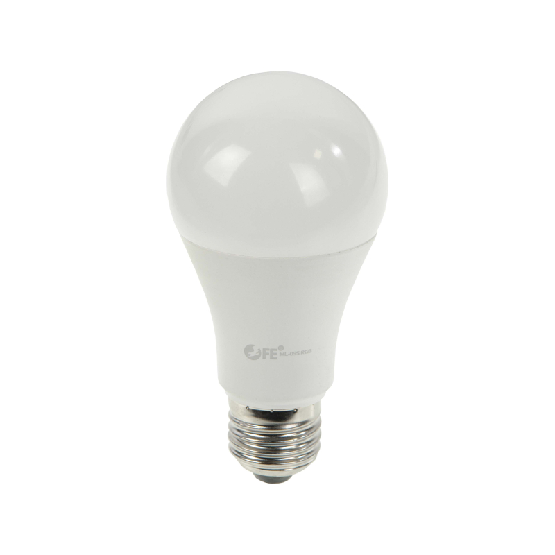Светодиодная лампа RGBW, мощность 9 Вт, индекс цветопередачи CRI>97, регулируемая яркость, цветное освещение, динамические спецэффекты. Управление со смартфона с приложением (требуется доступ к WiFi и Bluetooth). Колба А60, цоколь E27.