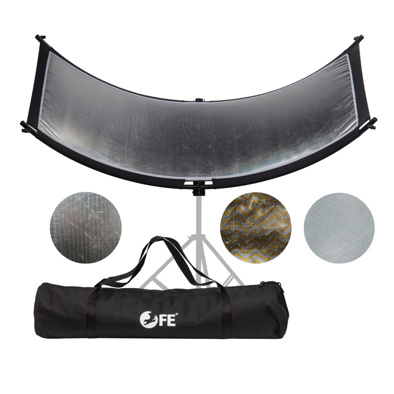 Отражатель 60х180 см, легкий алюминиевый каркас изогнутой формы, 4 цвета (черный/серебристый, белый /золотой), наклонный кронштейн на шпигот 5/8'', чехол для переноски комплекта