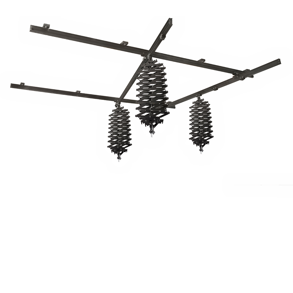 Комплект состоит из двух стационарных рельс длиной 3 м, двух подвижных рельс длиной 3 м и трех пантографов.