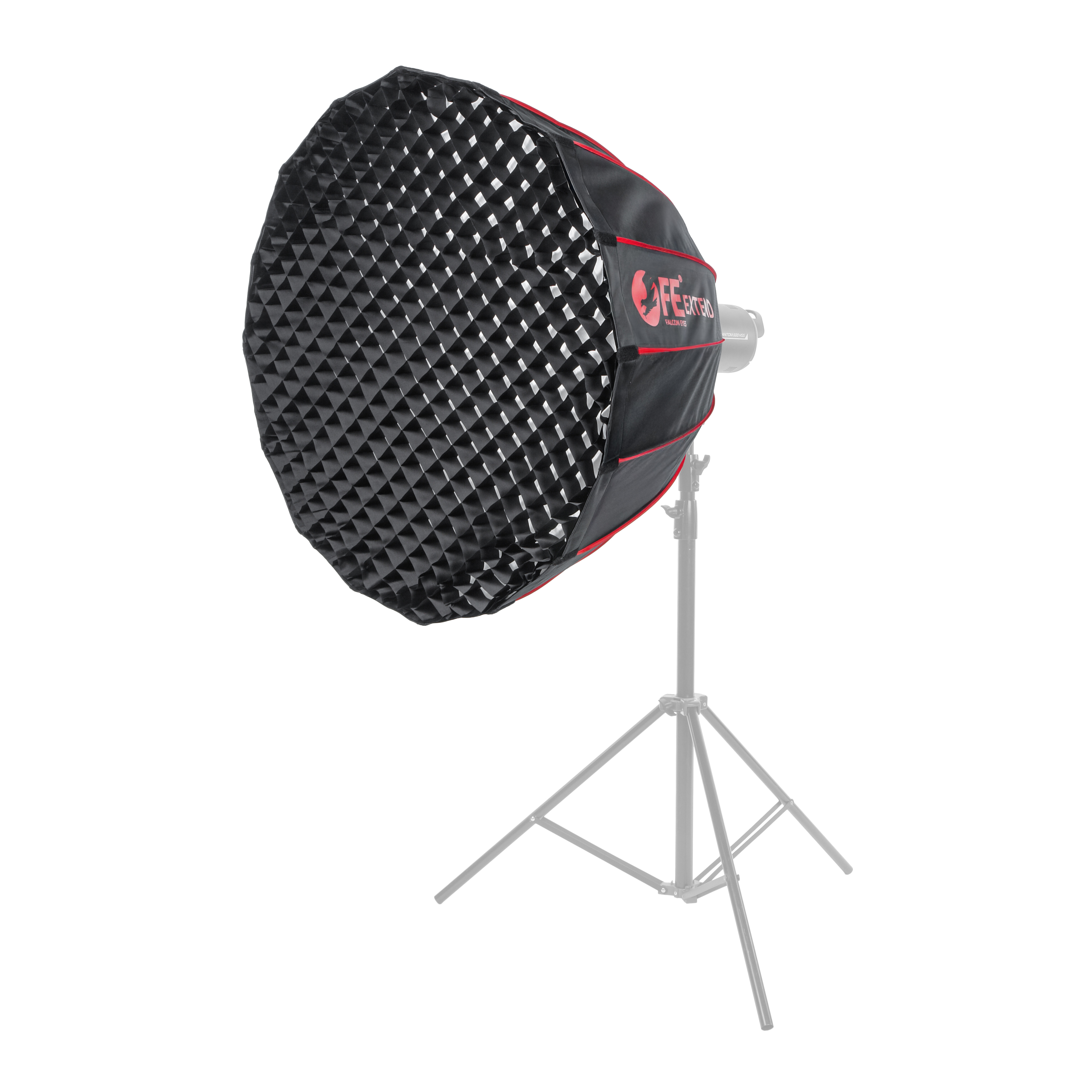 Параболический софтбокс, диаметр 90 см, глубина 59 см, быстроскладная конструкция, сменный байонет Bowens, в комплекте соты. Упакован в сумку на молнии. Вес 2 кг.