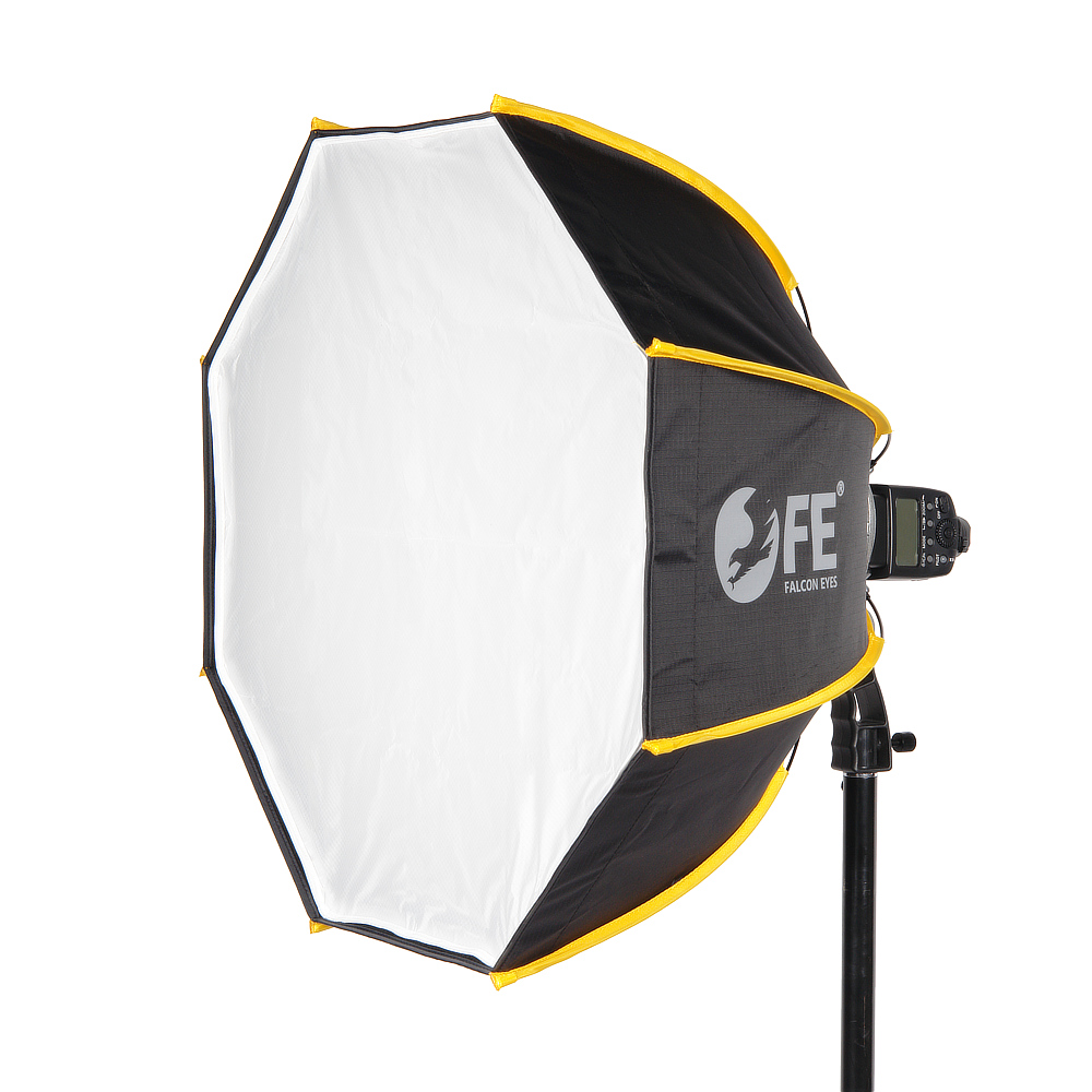 Быстроскладной октософтбокс для использования с накамерными фотовспышками вне камеры, O60 см, 8 металлопластиковых спиц, сменное кольцо-адаптер с держателем для накамерной вспышки, 2 диффузора, чехол.