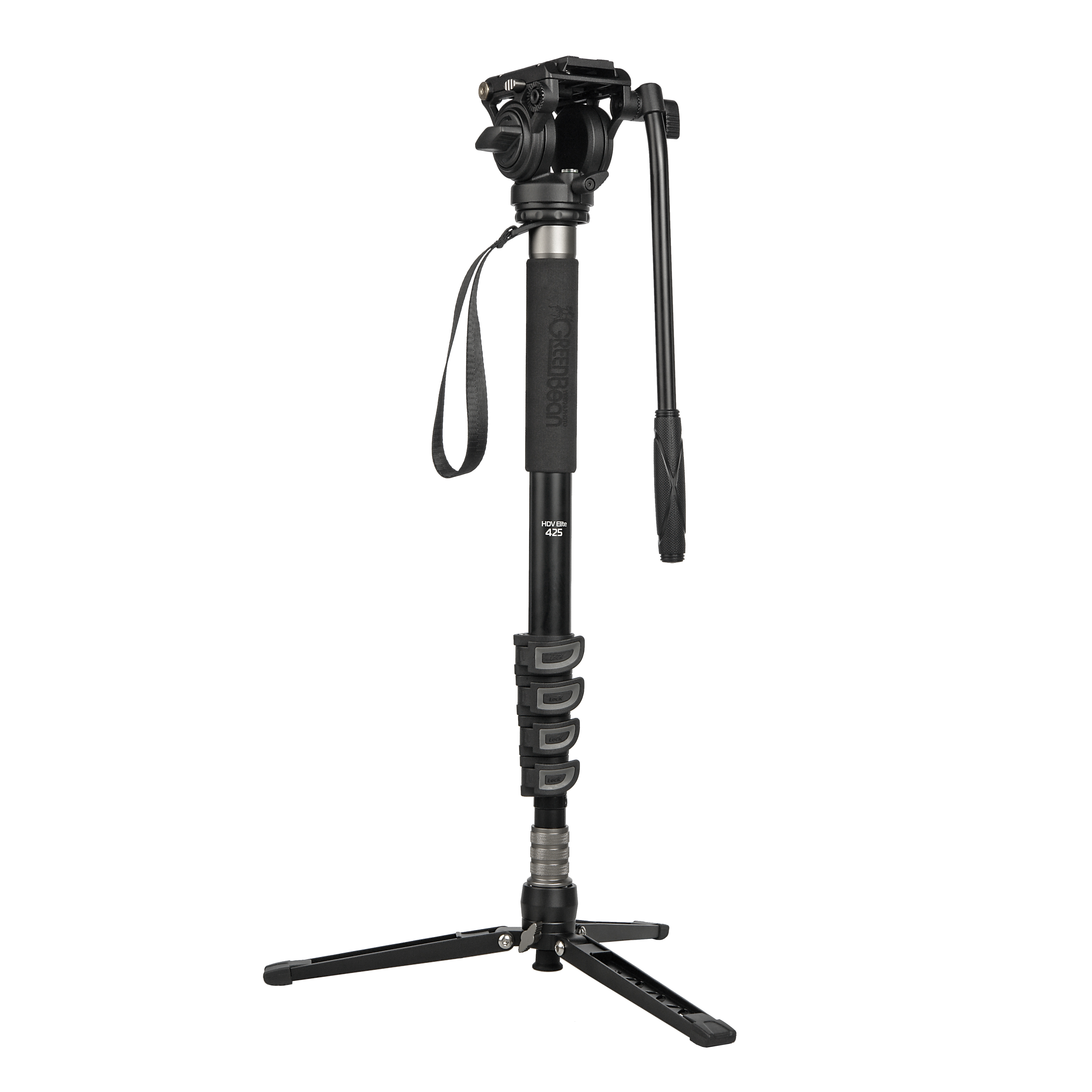 Монопод с 2D-видеоголовкой для цифровых видео- и фотокамер, жидкостное демпфирование, предустановленный контрбаланс, быстросъемная площадка, пузырьковый уровень, съемная рукоятка. Высота монопода 64.5–171 см, 5 алюминиевых секций, клипсовые зажимы QuickLock, нагрузка до 5 кг, вес 1.8 кг, сумка-чехол в комплекте