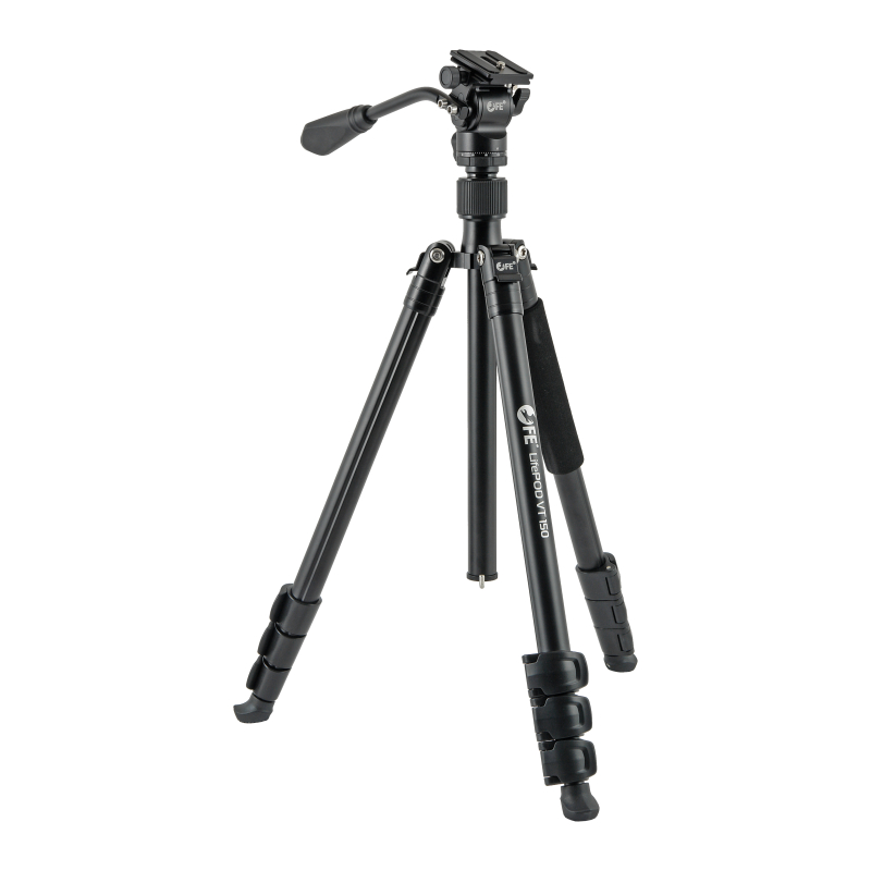 Нагрузка до 4 кг, максимальная высота 150 см, минимальная - 41 см, длина в сложенном виде 54 см, 4 секции, алюминиевый сплав, реверсивная колонна, съемная нога для монопода. 2D видеоголовка, быстросъемная площадка, адаптеры для смартфона и для камеры GoPro в комплекте. Вес штатива 1.3 кг.