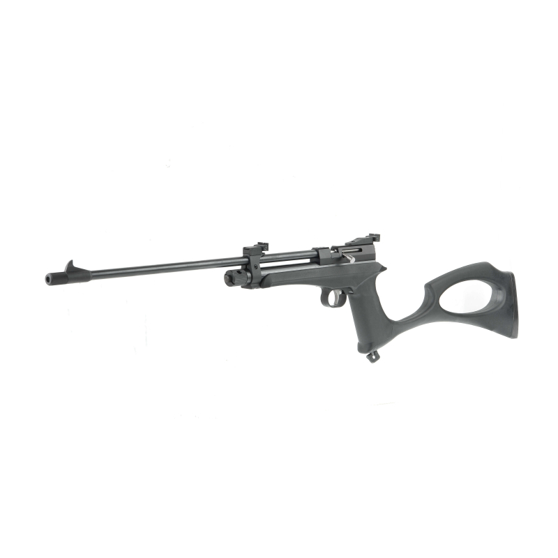 Газобаллонная (CO2,12 грамм) пневматическая винтовка/пистолет, калибр 5.5 мм, съёмный барабан на 7 пуль, съемная однозарядная площадка-приемник для одиночных выстрелов, длина ствола 208/450 мм. Спортивный вариант: левостороннее расположение рукоятки затвора.